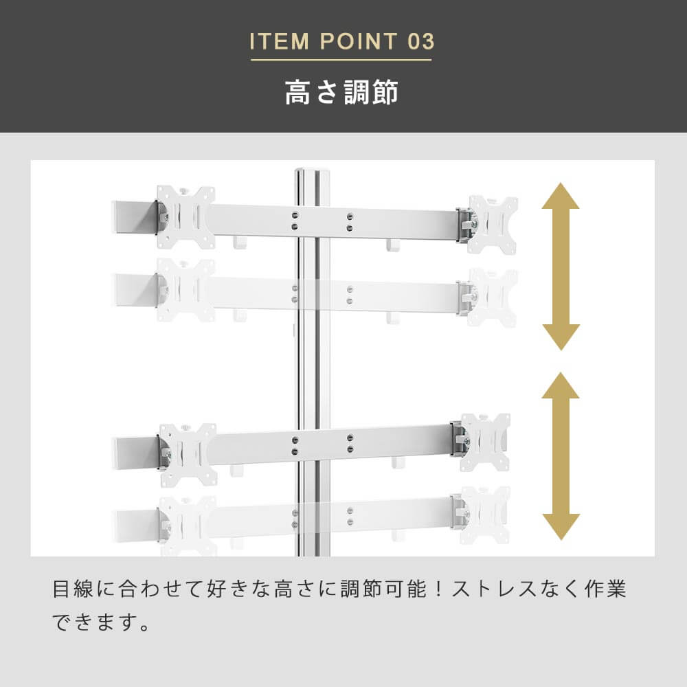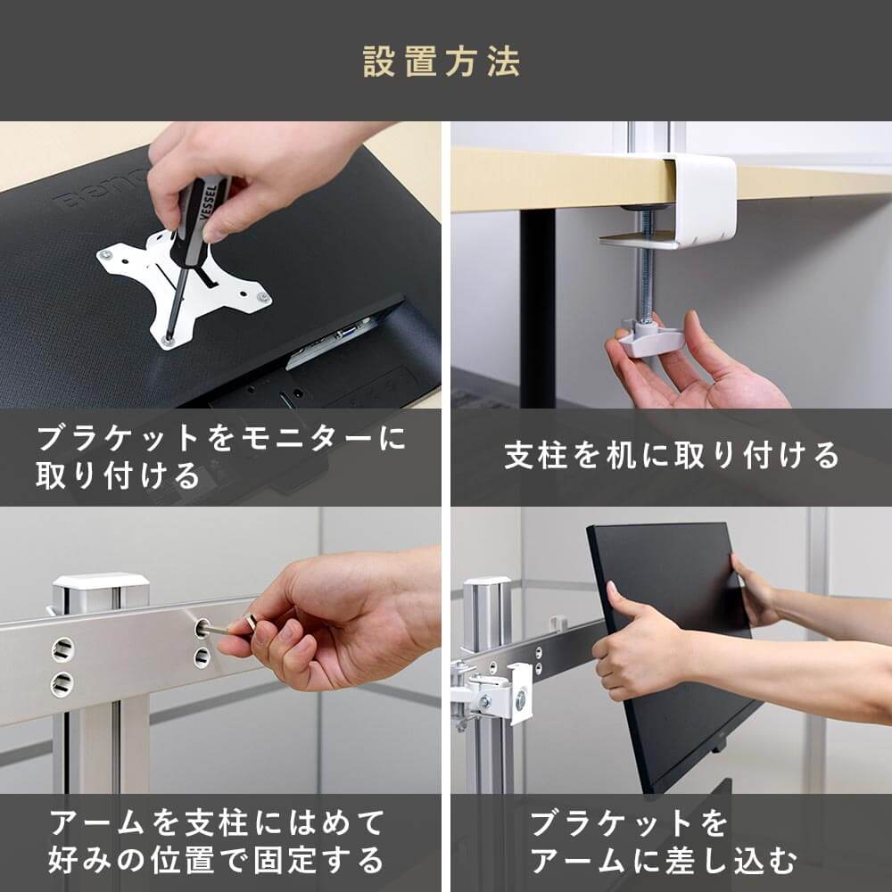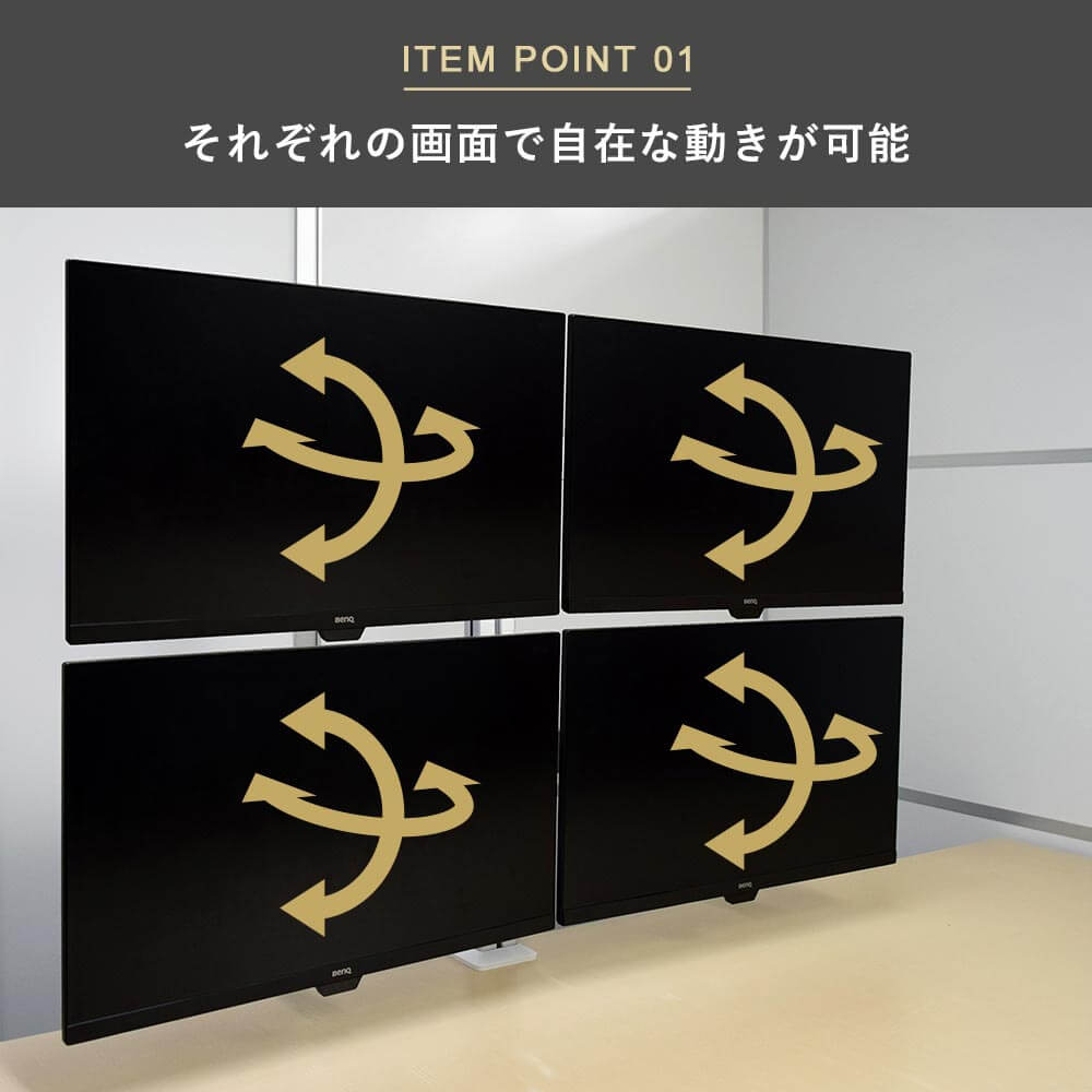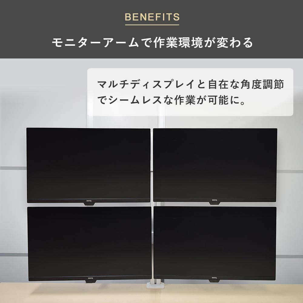 デザイン・質感にこだわるスタイリッシュな4台対応モニターアーム