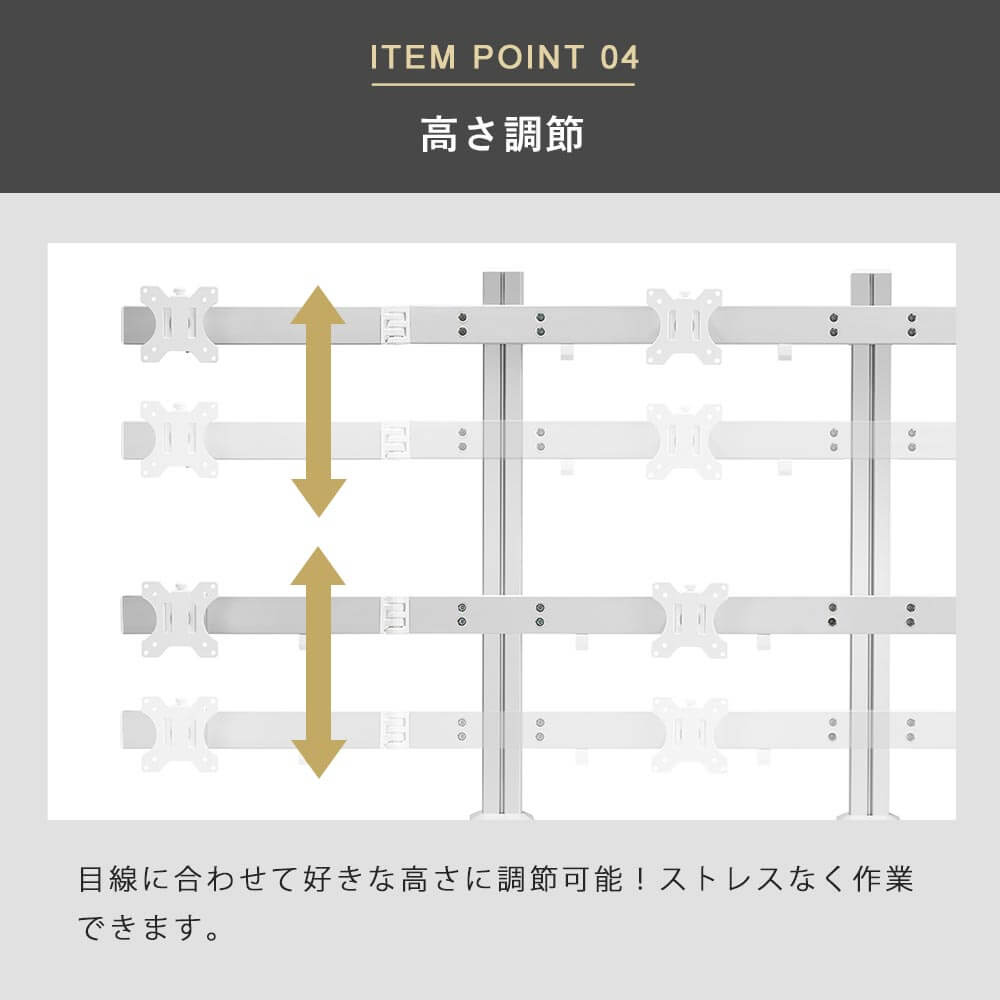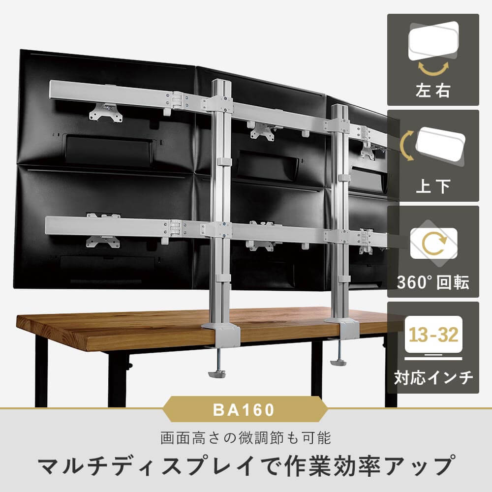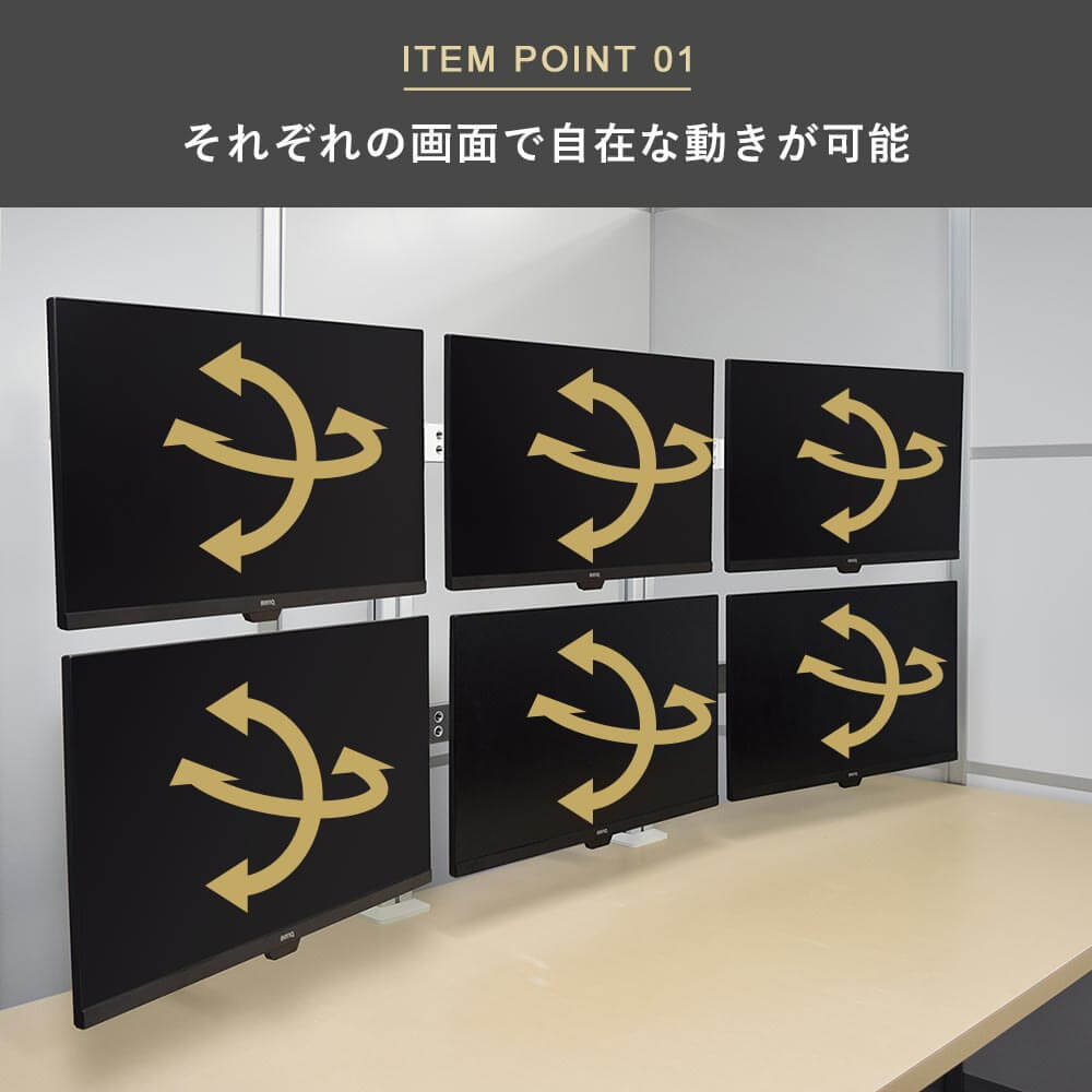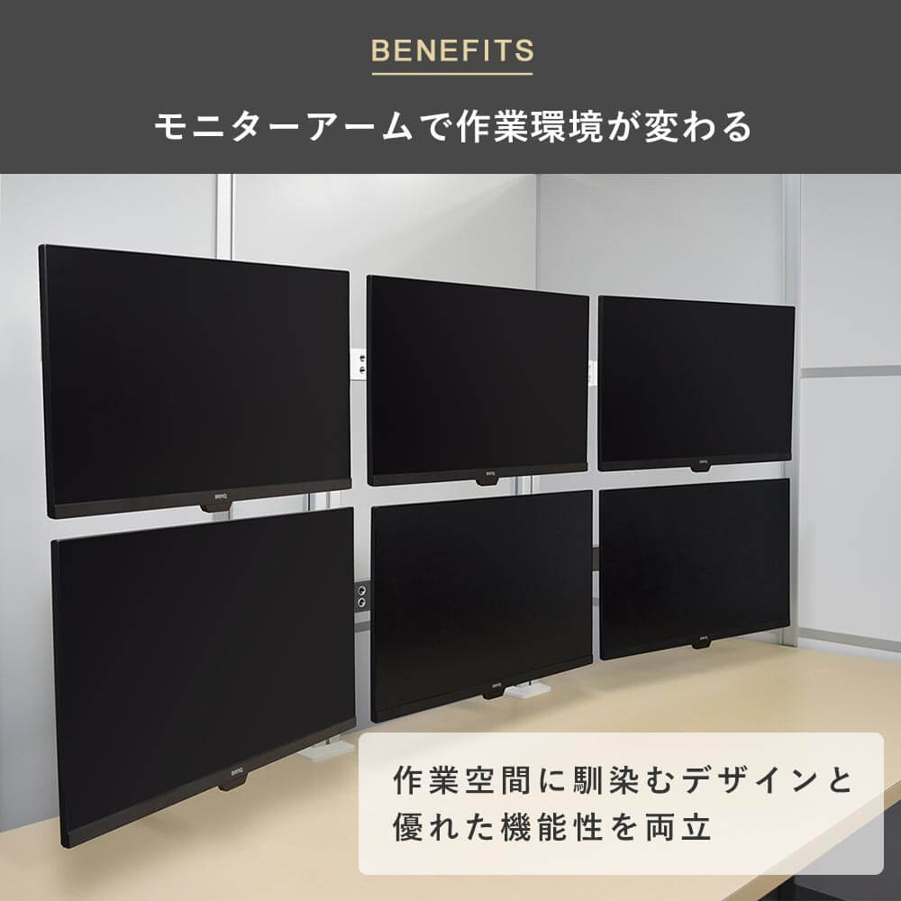 デザイン・質感にこだわるスタイリッシュな6台対応モニターアーム