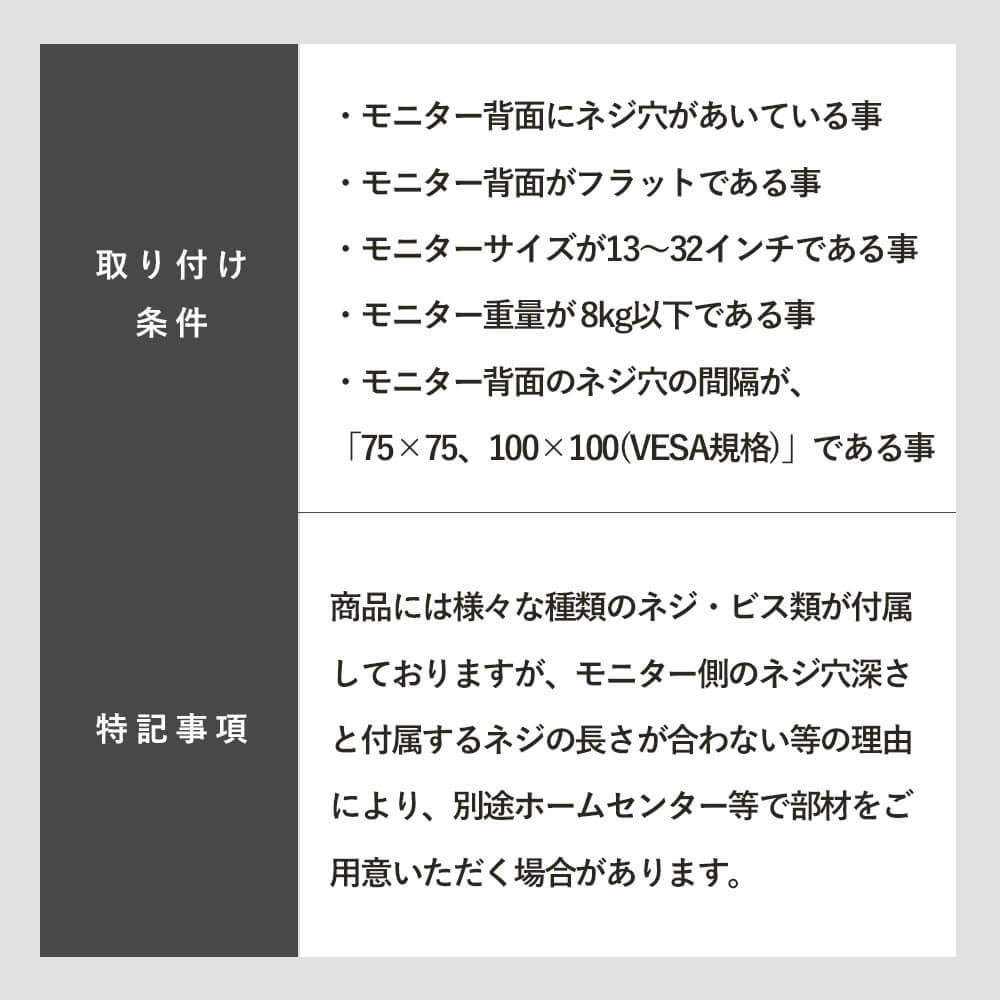 ・壁掛け用ネジ穴の間隔が75mmx75mm、100mmx100mmである事