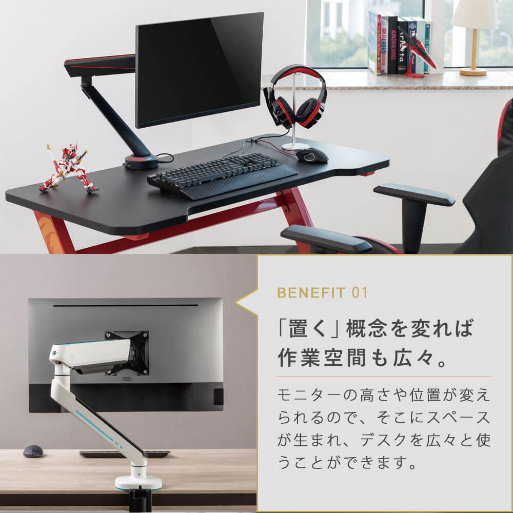 ゲーミング環境に最適なスタイリッシュデザインアーム