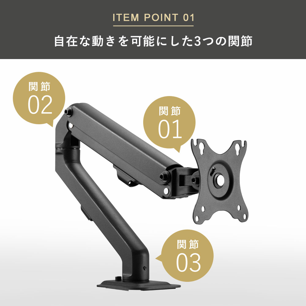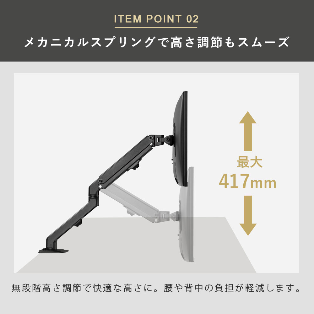 抜群のコストパフォーマンス 昇降機能付きのベーシックモニターアーム