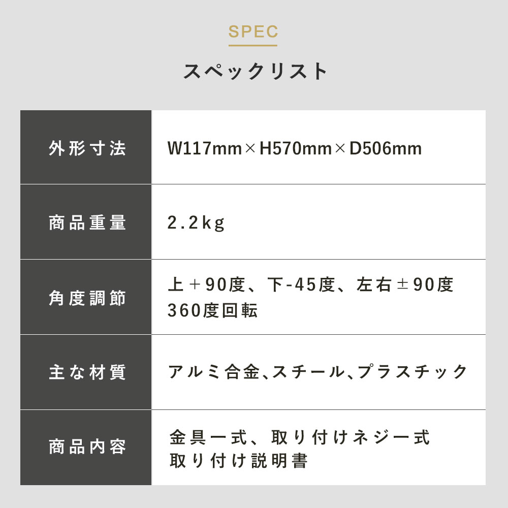 ・壁掛け用ネジ穴の間隔が75mmx75mm、100mmx100mmである事