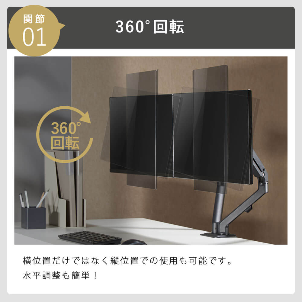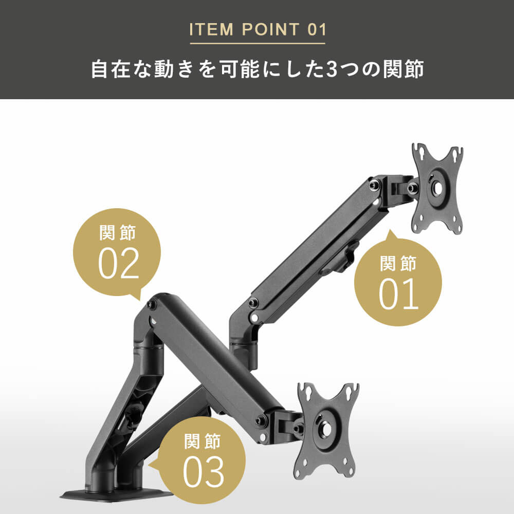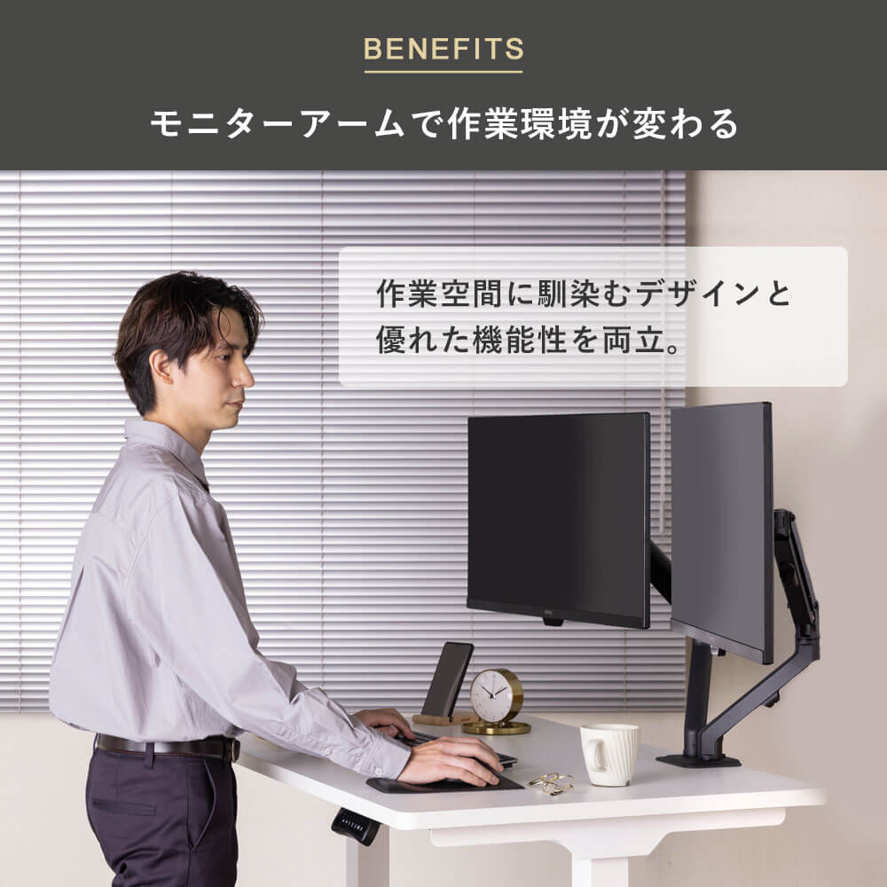 抜群のコストパフォーマンス 昇降機能付きの2画面対応ベーシックモニターアーム