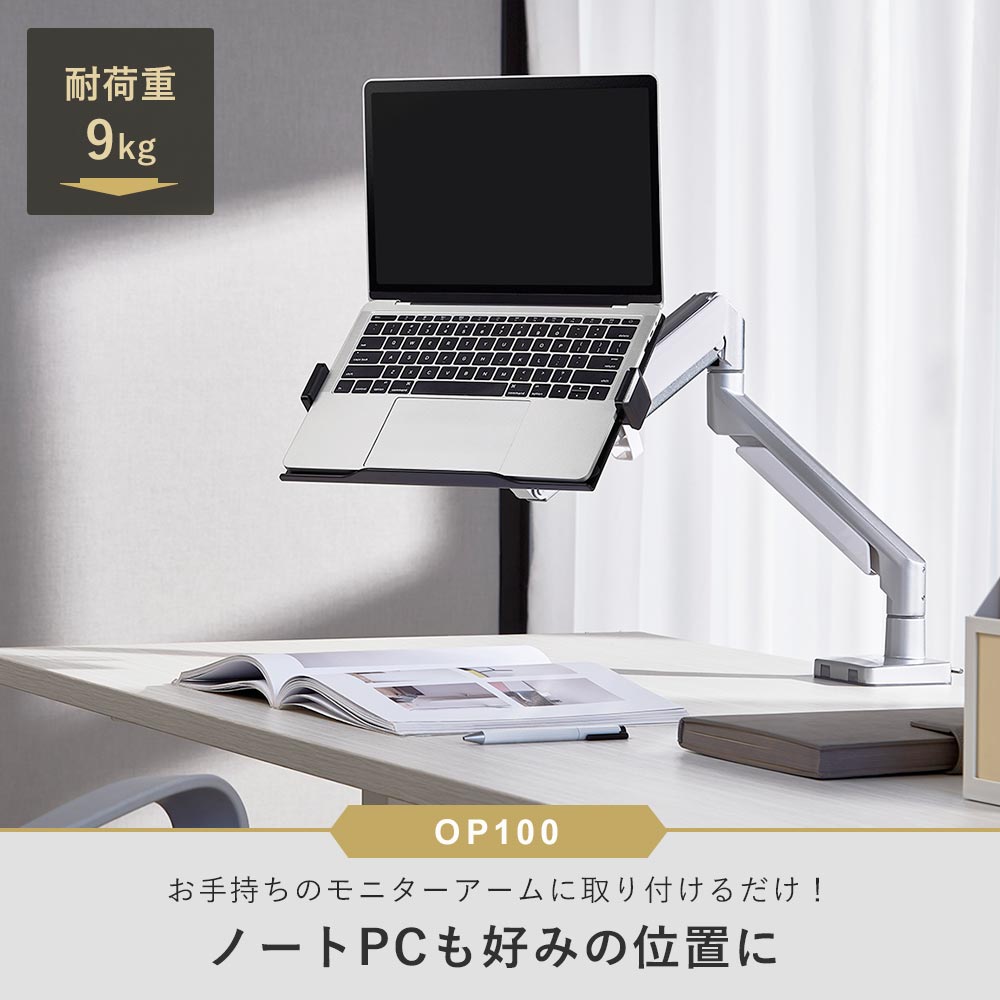 モニターアームにノートPCを取り付けてより便利に快適に