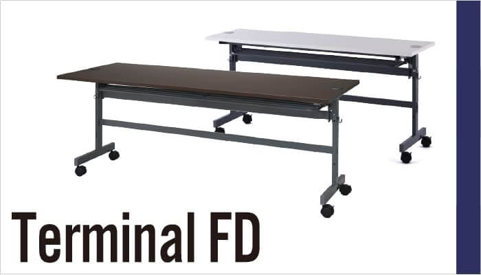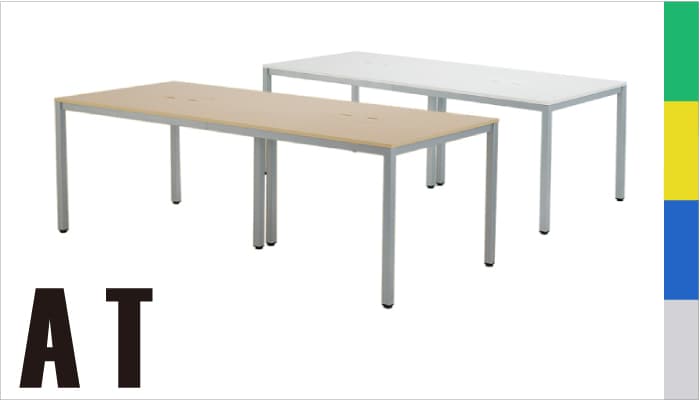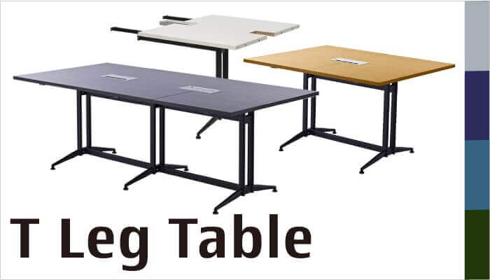 ![]() ▲スペースに合わせて増連が可能なT字脚テーブル |