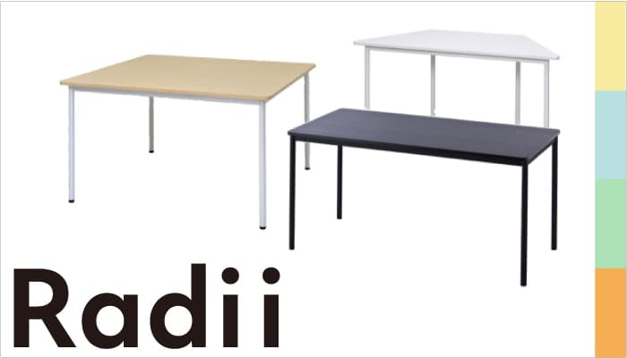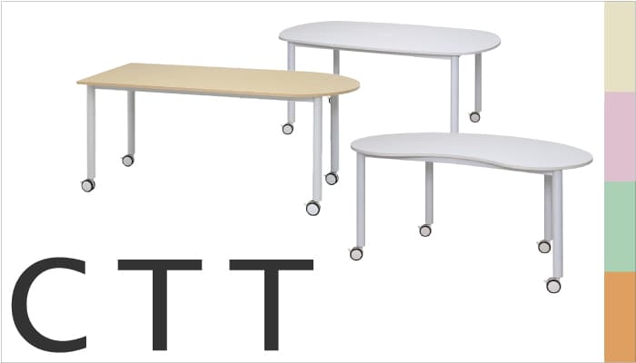 ▲豊富な天板形状で組み合わせレイアウト可能なテーブル |