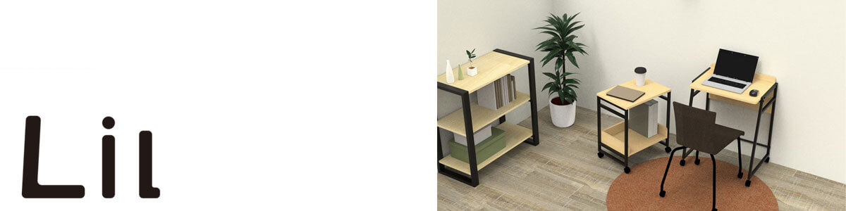 Lil(リル)シリーズは、出社と在宅テレワークのハイブリッド化が進む現代において、スペースにゆとりのない自宅でも仕事場を確保できるようにと開発されたコンパクトなデスクとシェルフです。リビングなど家族との共有スペースで仕事をする、定位置を確保できないという場合にも、キャスターで手軽に移動ができます。
