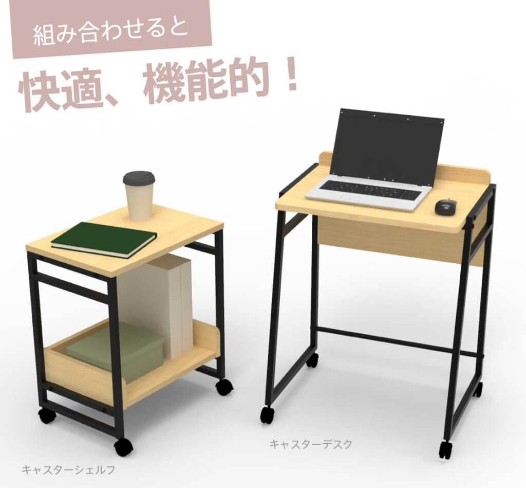 ■コンパクト設計のキャスター付きデスク