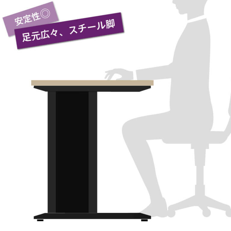 安定性抜群の丈夫なスチール脚は重心が後方にあるため足元がゆったり広々。離着席もスムーズにおこなえます。 |