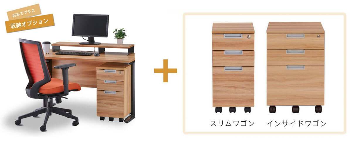 アソートシリーズは、デスク幅に合わせて選べる机上台やデスクワゴンで、デスク周りに収納をプラスできます。 |