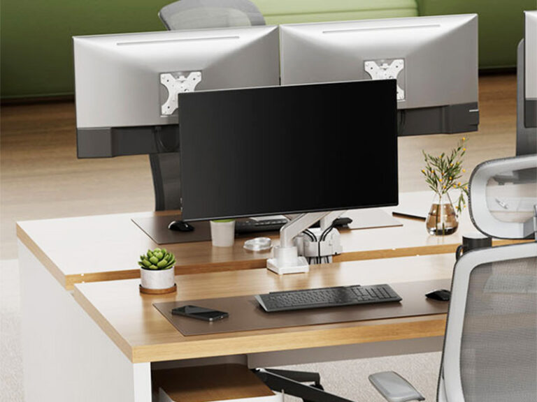ソリードフリーアドレス用デスク、ハーフデスクは、天板にクランプ式モニターアームの設置も可能です。クランプ取り付け可能範囲についてはご確認ください。弊社でもソリードシリーズ対応のモニターアーム(シングル・デュアル)を取り扱っております。