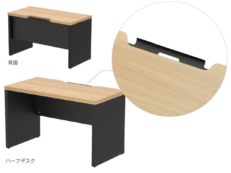■ハーフデスクは切り欠きと配線受けを完備