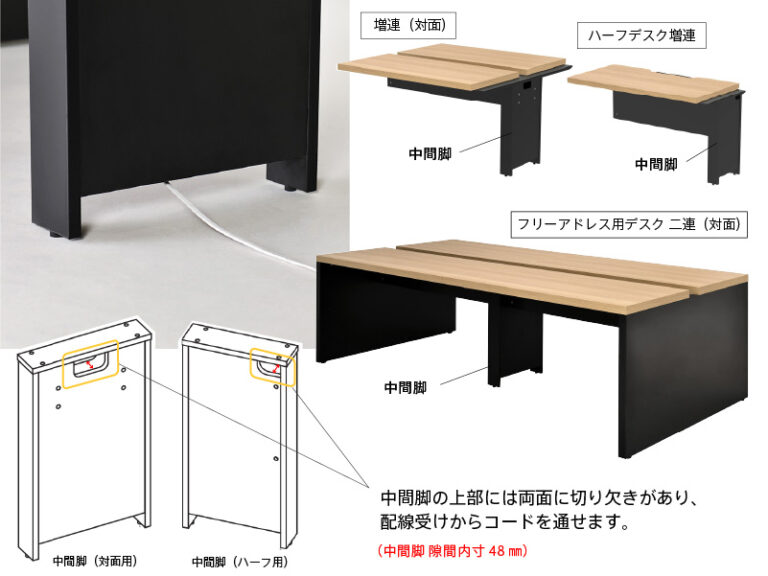 ■二連・増連の中間脚は配線ダクト機能も