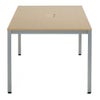 PCやマイクを使った会議に便利なコンセントケース付きのOAミーティングテーブルW1800xD900。コンセントケースは中央に1箇所、フタはスライド式ですっきりしています。天板はキズのつきにくいメラミン化粧仕上げ、脚部はシルバー(グレー調)のパウダー塗装です。