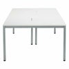 PCを使用する打ち合わせに便利な配線ボックス付きのOAミーティングテーブル。W2400*D1200mmの大型テーブルです。2枚天板でそれぞれの中央に配線ボックスがついています。配線ボックスのフタはスライド式で机上はすっきり、サイズはW270*D126*H50mmです。天板はキズのつきにくいメラミン化粧板仕上げ、脚部はシルバー(グレー調)のパウダー塗装です。耐荷重は約40Kgです。