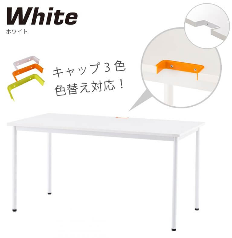 すっきりと清潔感のあるホワイト天板にはオレンジ、グリーン、ホワイトの配線切り欠きキャップが付属。お好みで付け替えてご利用いただけます。 *天板サイズW1200xD400とインナーテーブルには切り欠きがありません。 |