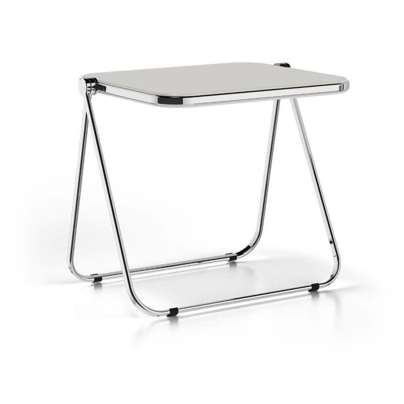 1967年に手がけたピレッティの代表作「プリアチェア」の構造を継承し、フレームの関節部分に施された独自の「3枚ディスク構造」によるフォールディング機能を備えています。折りたたむとわずか5.6cmのフラットかつコンパクトな形状になる、軽やかでスムーズな操作性が特徴。精巧なアルミニウム合金製の接合部とカンチレバー構造のフレームにより、高い安定性と空間効率を実現しました。ポリッシュ仕上げのフレームは、空間に自然に溶け合うミニマルなデザインを際立たせています。