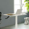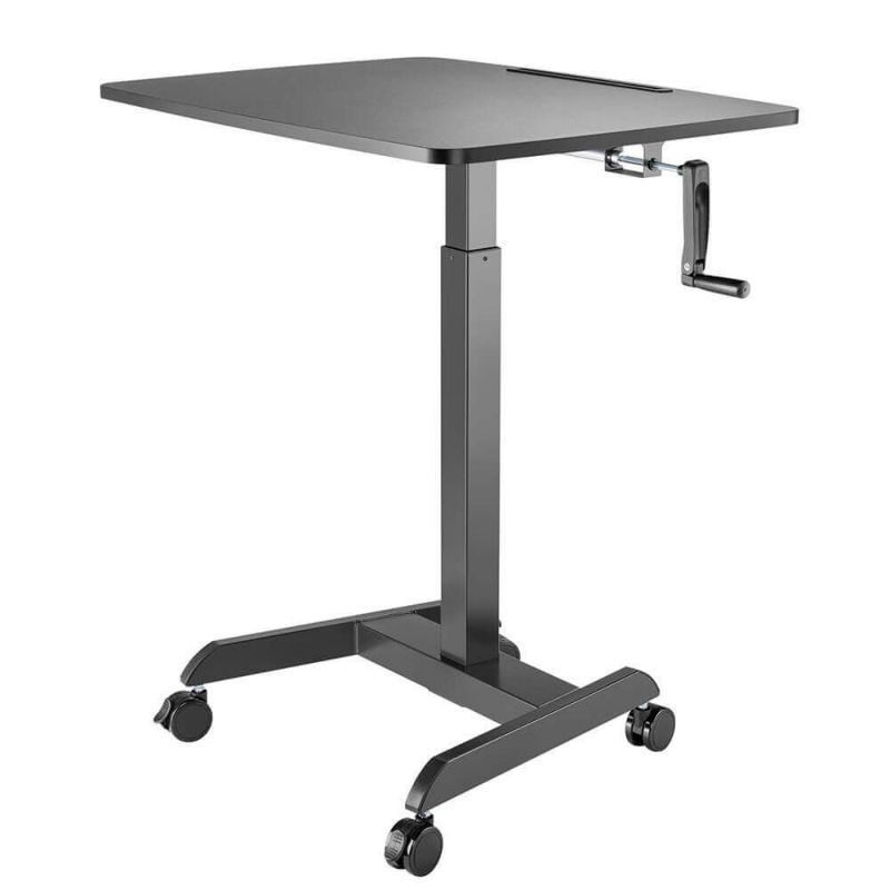 あると便利なちょうどいい大きさの昇降デスク。ハンドル式の昇降機能で高さ調節も簡単。