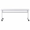 天板下のラックやフックを省いて見た目もすっきり、シンプル構造のシンプルフォールディングテーブル。たくさん置ける奥行き450タイプです。天板の形状は前方の両角がアールで、手前は直角。向い合わせで4台連結したときに配線が可能です。天板折りたたみ式でスタッキングが可能です。右側のレバーを押し上げながら、天板をゆっくり動かすことで簡単に折りたためます。シンプルフォールディングテーブル専用オプション幕板が設置可能(W1800タイプのみ)です。キャスター4個にはすべてストッパー付き。ご使用の際は、必ずキャスターをロックし、移動させる場合にのみ解除してください。天板の厚みは18mm 脚内有効寸法:W1642*H658(貫まで507)mm 耐荷重:天板20Kg 六角レンチ付属