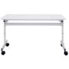 セミナールームや会議室、教室に欠かせないフォールディングテーブル。天板折りたたみ式で水平スタック収納が可能です。棚やフックを省いたシンプル構造、RFFT2より脚部間の幅を広げたことで下肢空間がゆったりしています。天板は四隅すべて丸角で、島型レイアウトの際には中央に配線逃し用の隙間ができます。また、丸角デザインによりカジュアルな印象で親しみのある空間を演出できます。右側のレバーを押し上げながら、天板をゆっくり動かすことで簡単に折りたためます。キャスター4個にはすべてストッパー付き。ご使用の際は、必ずキャスターをロックし、移動させる場合にのみ解除してください。 耐荷重:天板20Kg 六角レンチ付属