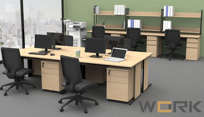 執務室のワークデスクやフリーアドレステーブルの下やサイドで活躍するデスクサイドワゴン。デスク周りでファイルや文房具などの収納に役立ちます。同じシリーズのデスクとコーディネートしてご利用いただけます。