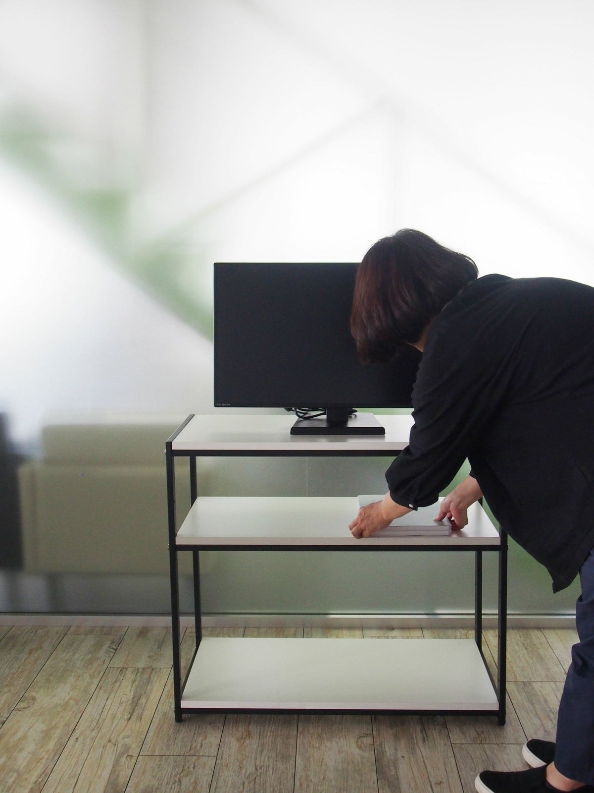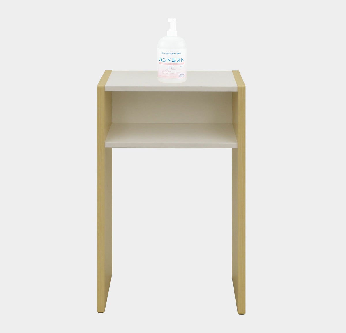 ▲エントランスでの消毒液や電話機置き用などに使えるラック