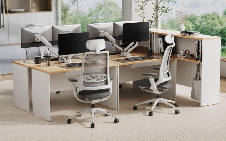 モニターアーム  メカニカルスプリング式 上締めタイプ ダブル  ホワイト RFMA-DT53-DUWH