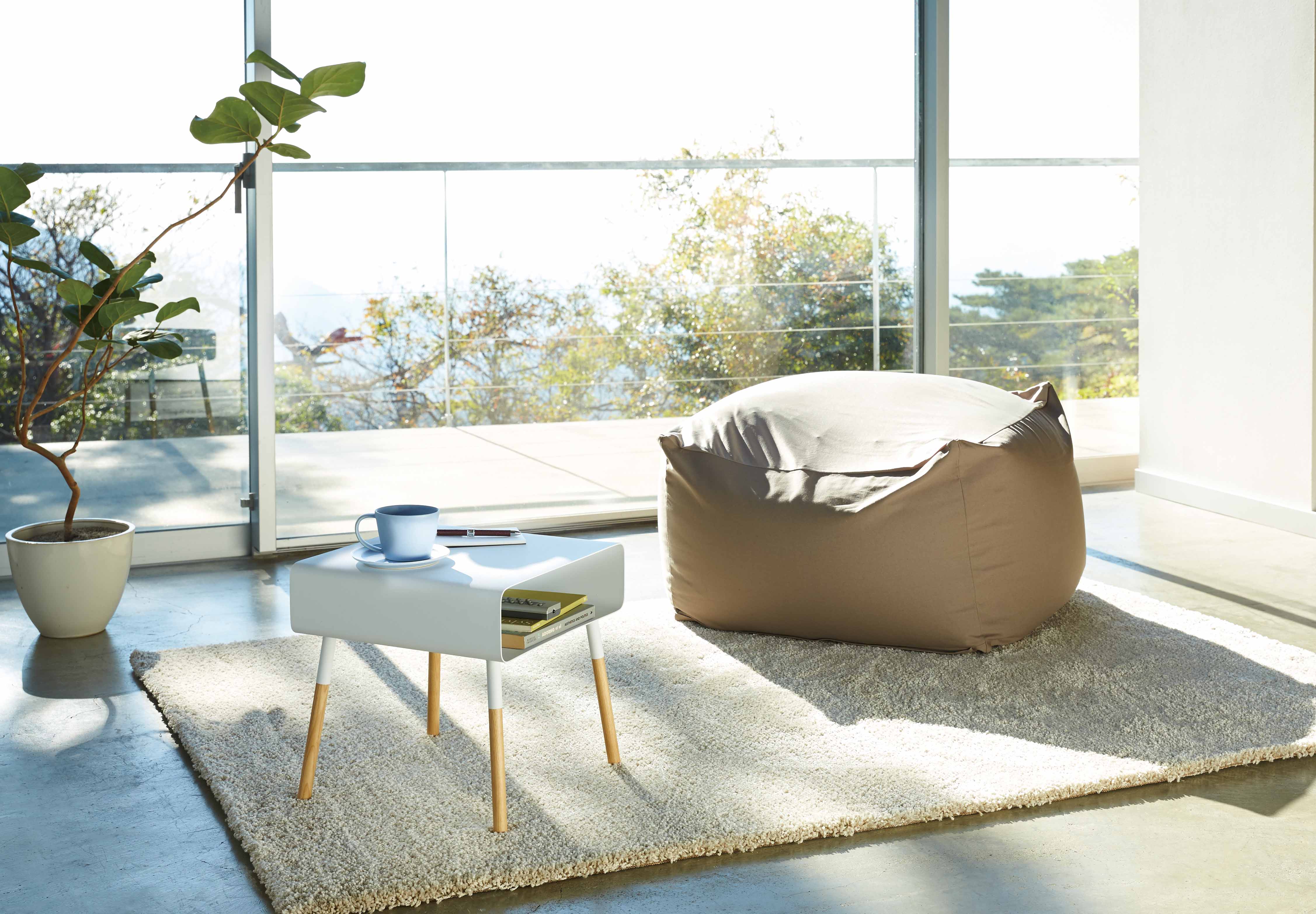 ローベッドやローソファに合わせやすいサイズのサイドテーブル。どんな部屋にも合わせやすいデザイン。収納付きなので読みかけの雑誌やリモコンなどの収納にも便利です。