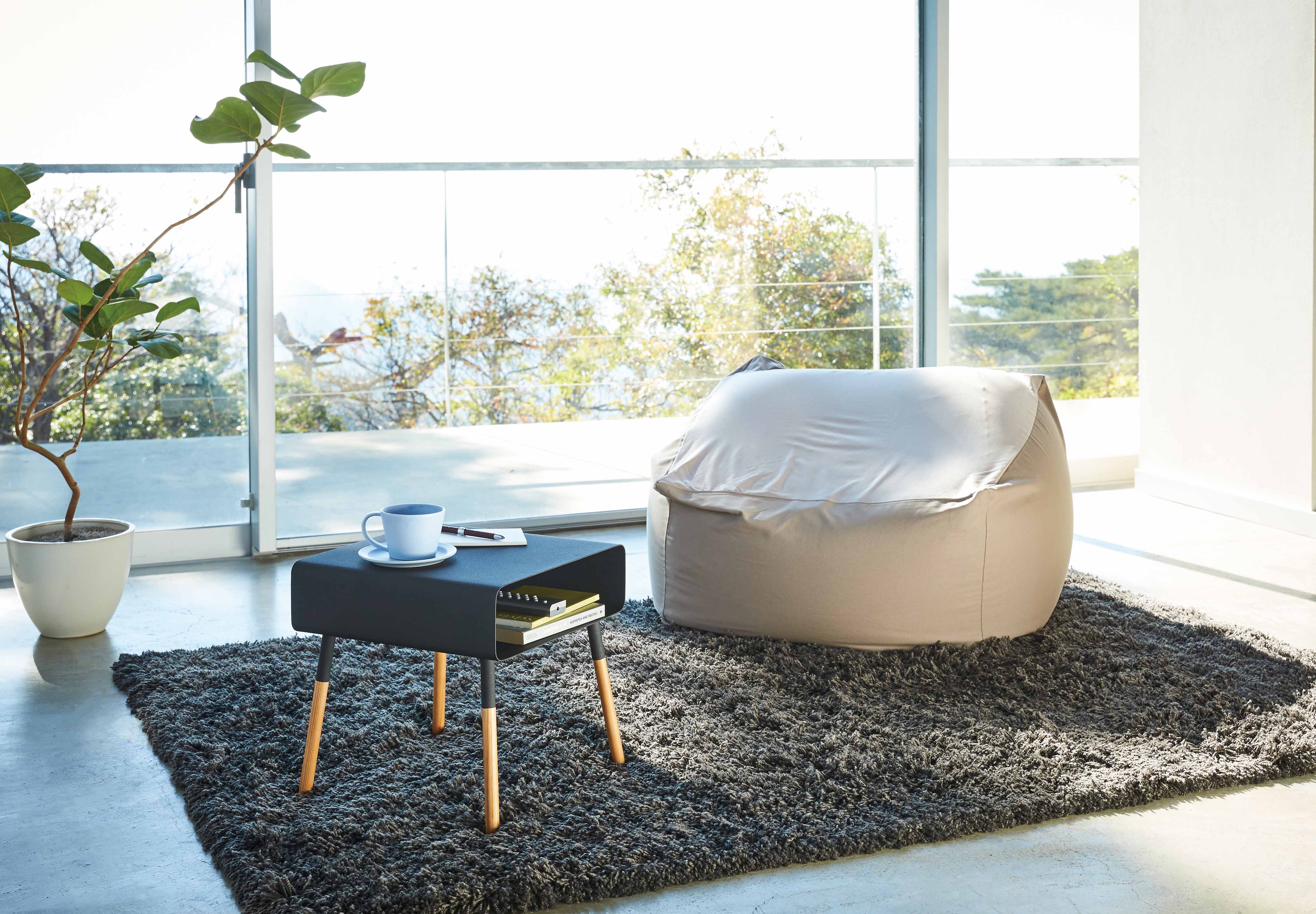 ローベッドやローソファに合わせやすいサイズのサイドテーブル。どんな部屋にも合わせやすいデザイン。収納付きなので読みかけの雑誌やリモコンなどの収納にも便利です。