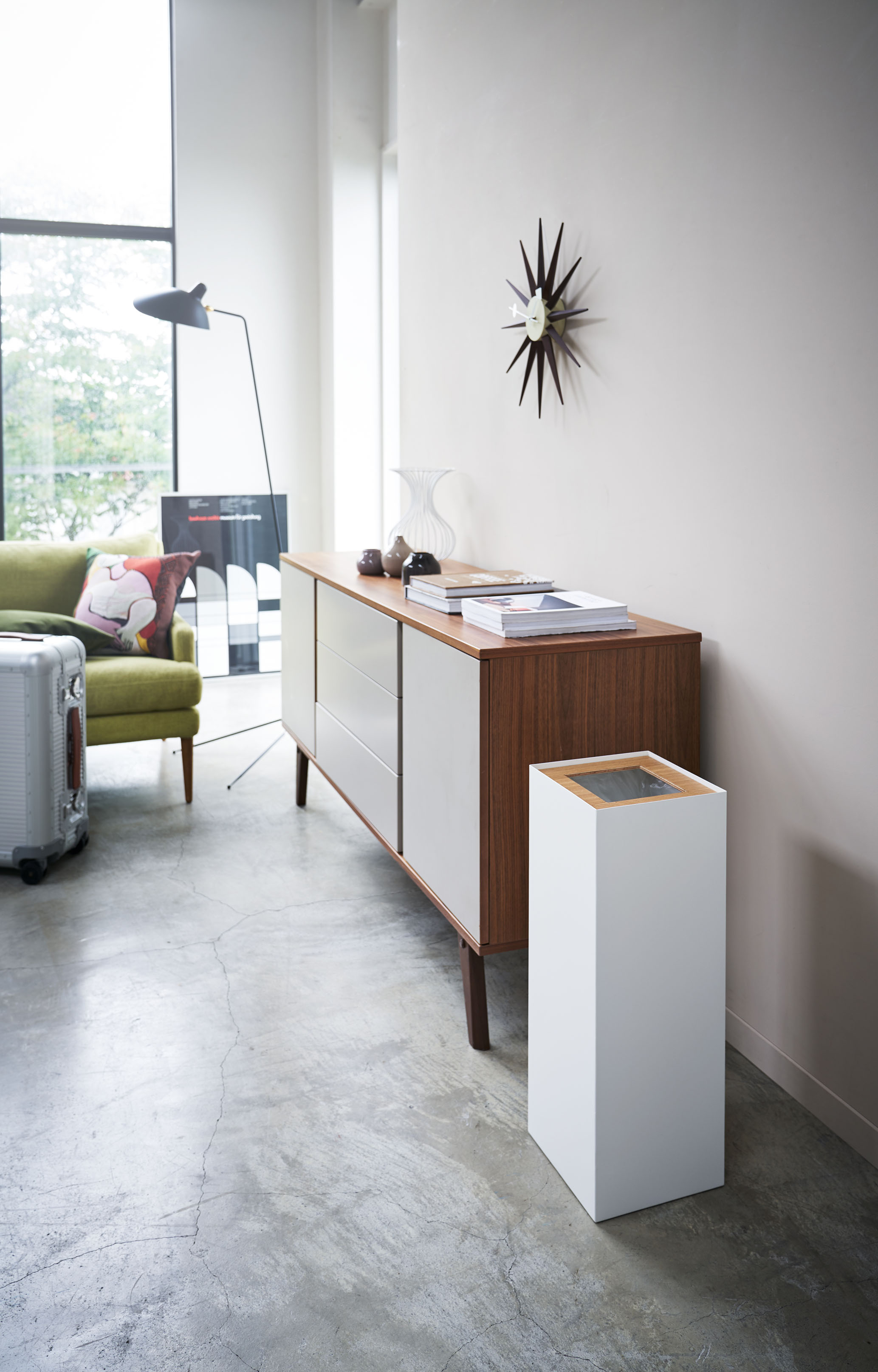 material (素材) : 本体・ストッパーリング:スチール(粉体塗装) 蓋:天然木積層合板(ラッカー塗装)