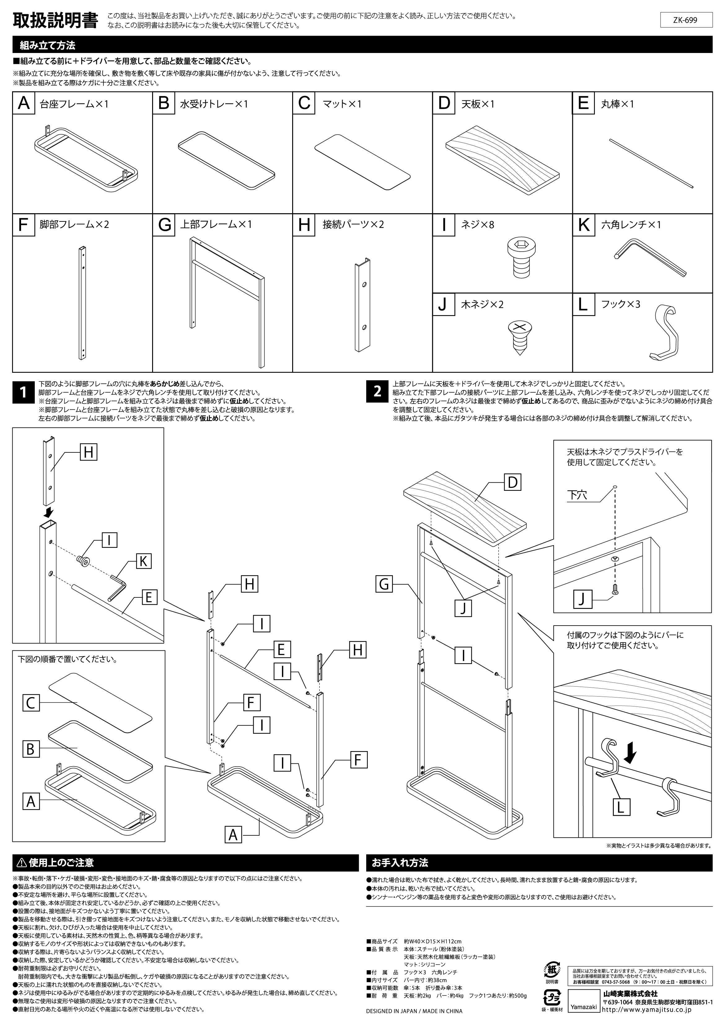 material (素材) : 本体:スチール(粉体塗装) 天板:天然木化粧繊維板(ラッカー塗装) マット:シリコーン
