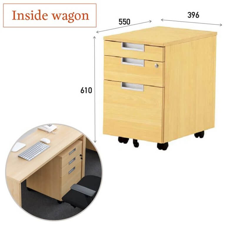 デスク下に収納をプラスするインサイドワゴン(別売)を合わせてご利用いただけます。 |
