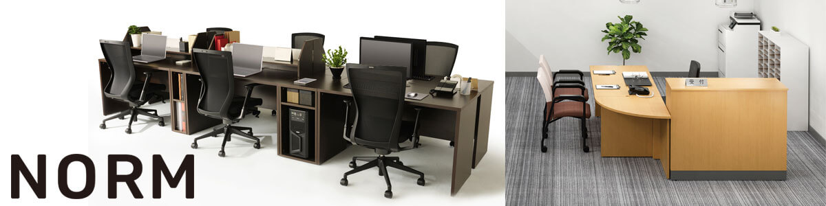 Norm ノルムシリーズは、中小規模オフィスや小さな事務所の固定席レイアウトにもおすすめのデスク周り、1枚単位で自立する、設置や移動が手軽な独立式パーテーション、オフィスはもちろん、塾や店舗、クリニックの受付など、多様な接客シーン向けのカウンターなどトータルでコーディネートできます。