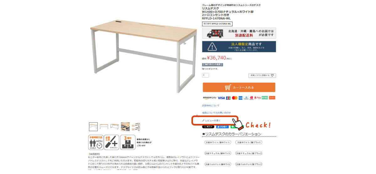B.商品詳細ページの「レビューを書く」